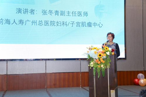 前海人寿广州总医院妇产科副主任医师张冬青在“子宫肌瘤”及“更年期女性肾气虚证及中医调理”两方面,发表了题为《关爱女性健康》的演讲。张冬青介绍,雌孕激素水平、生殖因素、遗传因素、肥胖因素,是诱发子宫肌瘤的四大原因,其中,雌孕激素水平是促使肌瘤生长的主要因素;她指出运动可使肌瘤的发生率降低,并号召女性要保持一定的运动量。同时,张冬青副主任提出子宫肌瘤治疗五法,观察法、手术治疗法、药物治疗法、子宫动脉栓塞术UAE法及磁波刀治疗法等。